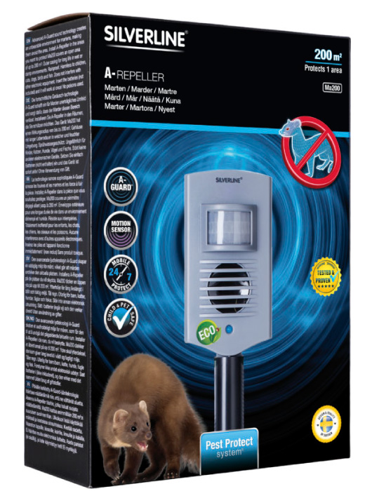 Silverline A-Repeller Ma200 karkottaa näätää edistyksellisten ääni-taajuuksien avulla. Ma200:ssa on: